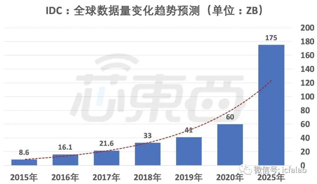▲IDC监测2015-2020年全球数据量变化趋势以及2025年预测