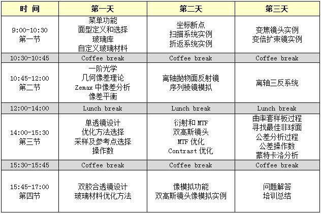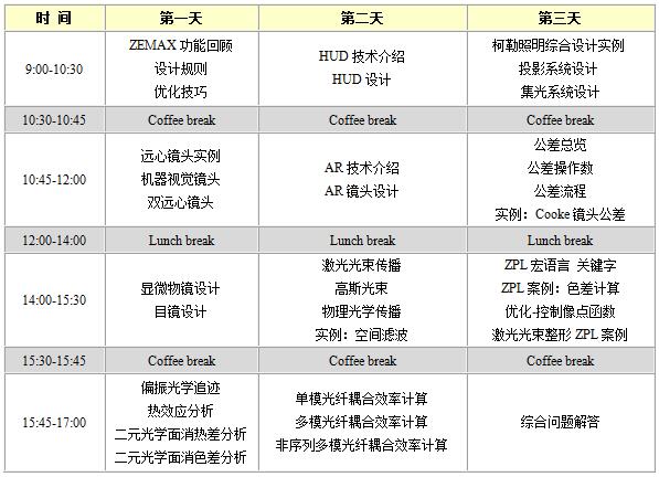ZEMAX 标准成像课程内容及安排: