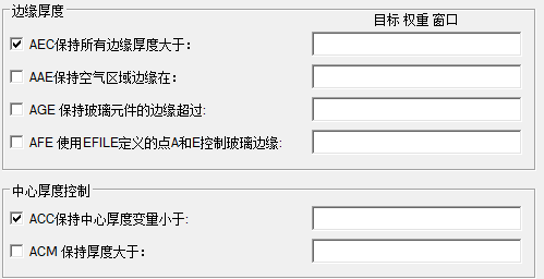 进行优化的时候,SYNOPSYS 可以利用 AEC 指令自动监控透镜边缘厚度,利用 ACC 指令自动监控透镜中心厚度,利用 ADT 指令自动监控透镜厚度。还可以利用 GSEARCH 功能对透镜的
