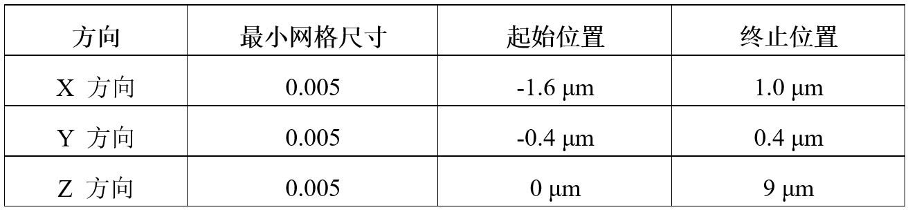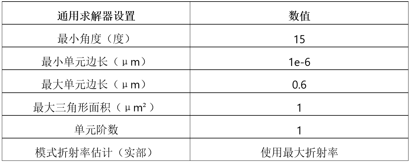 采用表 3 所述的非均匀网格,仅在波导间隙(ωg)等小特征尺寸区域应用精细网格单元,实现计算效率的优化。 D5]4(]k& 耦合区包含带线性锥形亚波长光栅的条形波导和槽型波导;分离区包含一个 S 形弯曲结构,沿 z 轴和 x 轴的偏移量分别为2.1μm和0.9μm。 ZI"L\q=|0# 硅(Si)和二氧化硅(SiO₂)的折射率分别取3.47 和1.44;边界条件设置为 x、y、z 方向的各向异性完美匹配层(APML);仿真区域的晶圆尺寸为:长度9μm,宽度6μm。 z"/Mva3| 表1.FEM求解器的设置详情